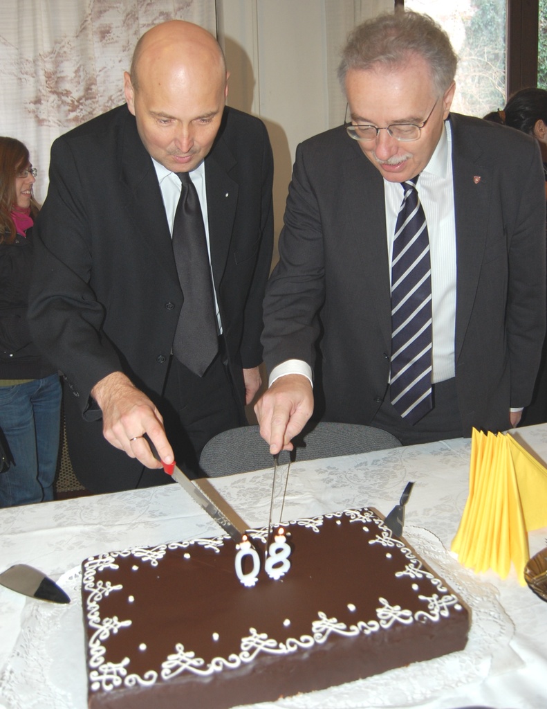 Steinbach József püspök úr és dr. Fodor Tamás polgármester úr felszeli az ünnepi tortát